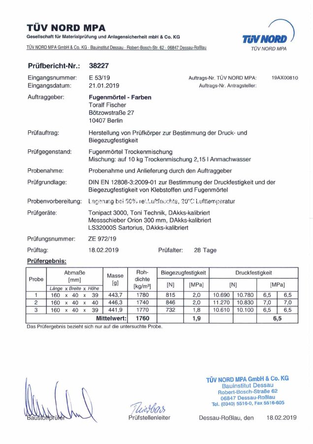 Fuge härtet rissfrei aus und bricht nicht aus: | ja |